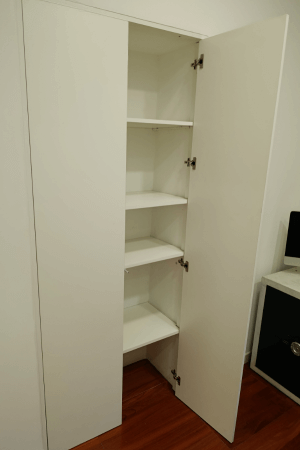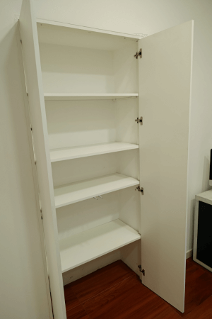 In questo progetto ho realizzato un’armadiatura su misura pensata per sparire completamente nella parete dello studio. L’obiettivo era massimizzare la capacità di archiviazione senza intaccare il design pulito e minimale dell'ambiente. Le ante, rifinite in bianco opaco come le pareti, creano una superficie continua che nasconde un interno attrezzato con ripiani solidi e riposizionabili.